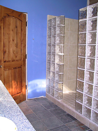 countertops were installed in the bathrooms and kitchen.Au mois d'août, le carreleur est venu terminer et les