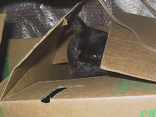 Kitty is all packed, making sure she won't be left behind again.